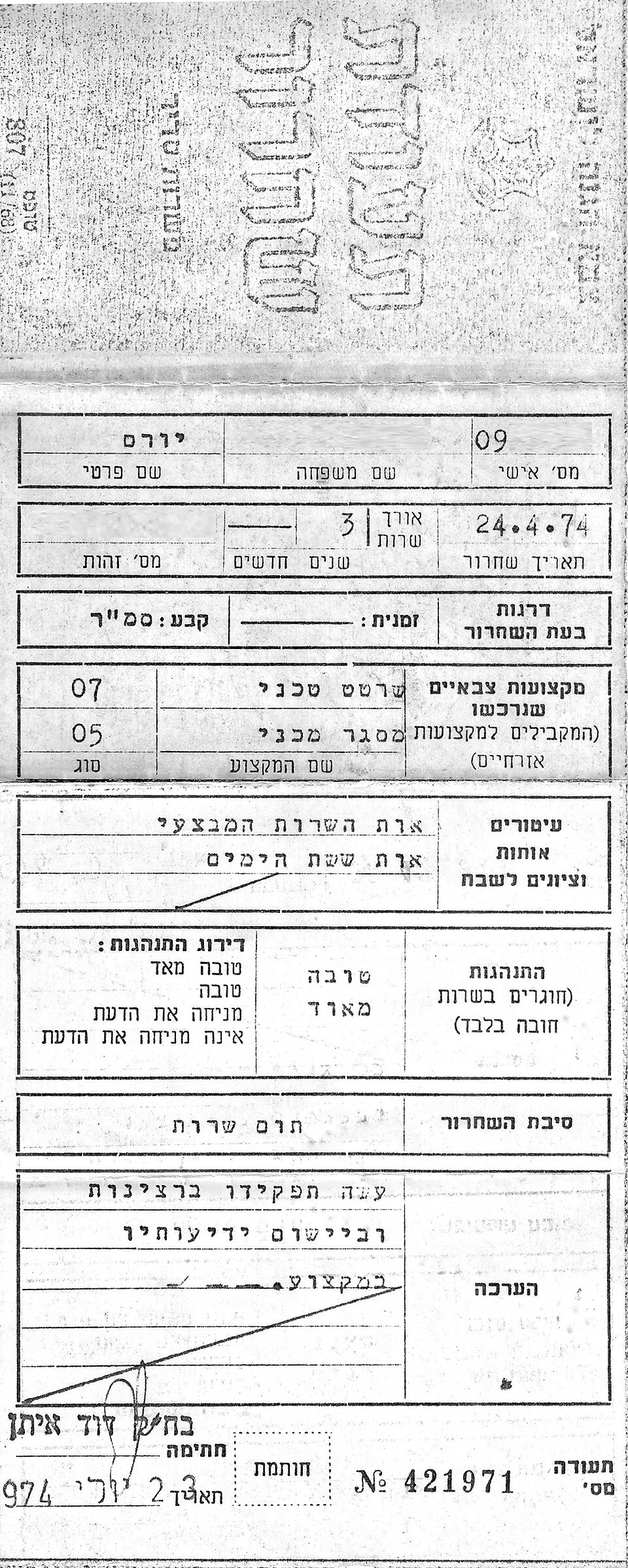 The following document is a Soldier's discharge certificate. The form states the types of decorations, campaign ribbons and citations that the soldier earned. In this sample the Operational Service Badge is mentioned.