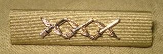 IDF regulations state that in case the citation relates to an act performed during a period for which a campaign ribbon exists, then this campaign ribbon will serve as the background for the crossed sword and olive branch. For the first 3 citations this is no problem, but the brigade commander citation is an empty ribbon, so this is connected to the side of the campaign ribbon. Here the various citations in combination with the campaign ribbon for the Second Lebanon War.