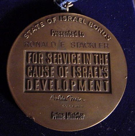 State of Israel Bonds medal awarded to Henry Sender in 1989 |