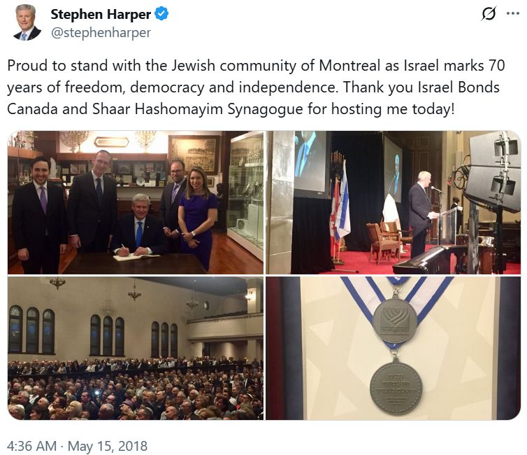 Israel Bonds Medal to Stephen Harper, 2018 |