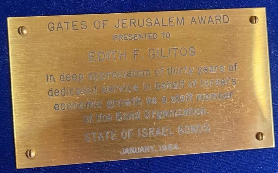 State of Israel Bonds - Jerusalem Gates medal awarded in 1984