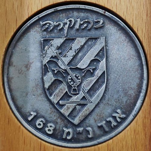 medal, 1974 IAF 100th ("Flying Camel") Squadron 25th anniversary commemorative medal; struck in tombak; weight: 39.85; size: 45mm obverse depicts the emblem of the Israel Air Force with legend "11 [in the month of] Tammuz 5734" [1 July 1974]; on reverse, the emblem of the Squadron with legend "25 Years to the [founding of the] Squadron". The 100th was the first organized squadron formed in the Air Force (8 July 1949) and served as transport squadron until today. |