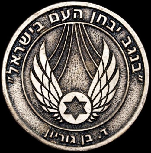 "Golden Wings" Israeli Air Force Pilot Course Jubilee The medal is awarded by the commander of the Air Force. Gold colored. Diameter 60 mm Source: Ebay Seller |