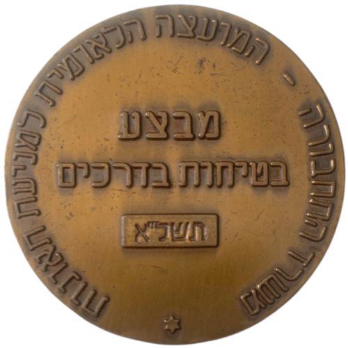 Operation Road Safety 1971 Bronze 59 mm Private medal issued by the Ministry of Transport On the back, the emblems of the cities of Nes Ziona, Rishon Lezion and Rehovot |