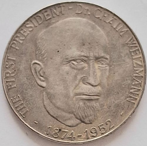 Chaim Weizmann Presidents of Israel Series 1997 50 Years Israel Produced versions: Gold, diameter 24 mm, weight 10.36 g Silver 925, diameter 37 mm, weight 26 g Steel/Copper, diameter 23 mm, weight 11 g |