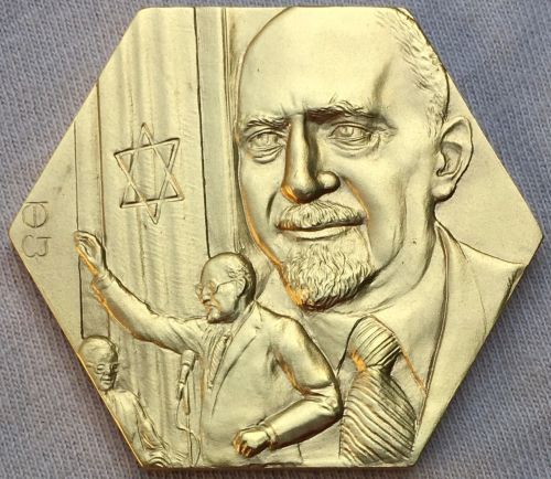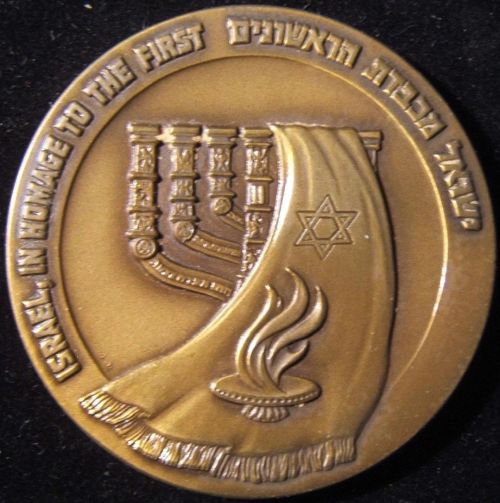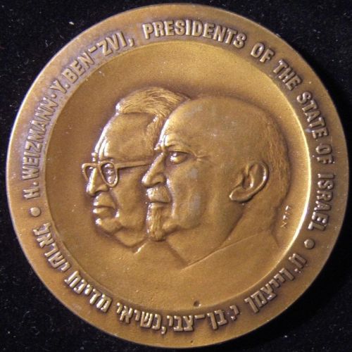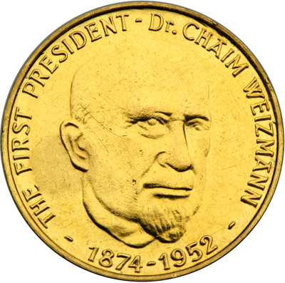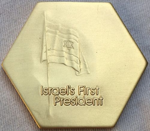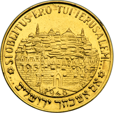 Privately Issued Gold Medal, 1967 Diameter 26mm. Weight 7.9 g, Front: Portrait of Israel's first President Back: panoramic view of Jerusalem, with inscription "Si oblitus Ero Tui Ierusalem." (If I forget Thee, Jerusalem) Source: https://www.worthpoint.com |