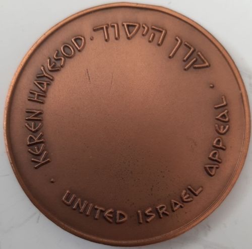 Bronze medal designed by the Bezalel Artist Shmuel Kretschmer. Issued by Keren Hayesod. Diameter 45 mm |
