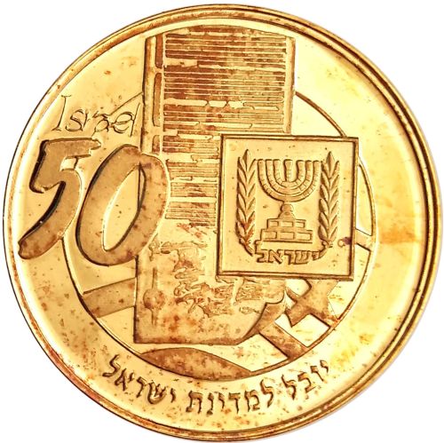 50 Lirot Coin Tenth Anniversary of Weizmann's death Gold 916 1963 Diameter 27 mm Weight 13.34 g. Israel Coins and Medals Corp. Made in the State Mint, Bern, Switzerland |