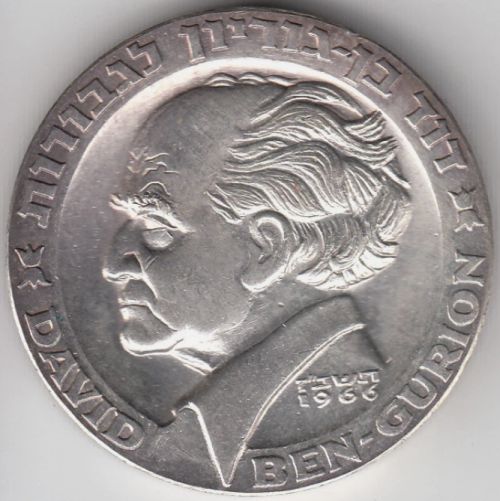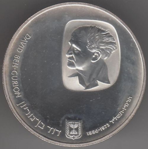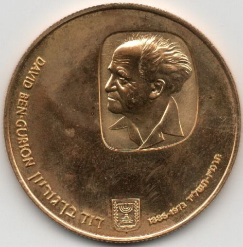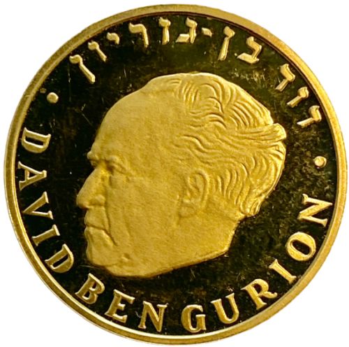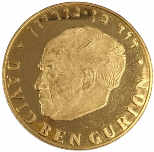 David Ben Gurion 1974 Coin 500 Lirot Gold 900 28 g, diameter mm Issued by the Israel Government Coins and Medals Corp. Minted at the Swiss Federlal Bank, Berne, Mintmark "mem" |