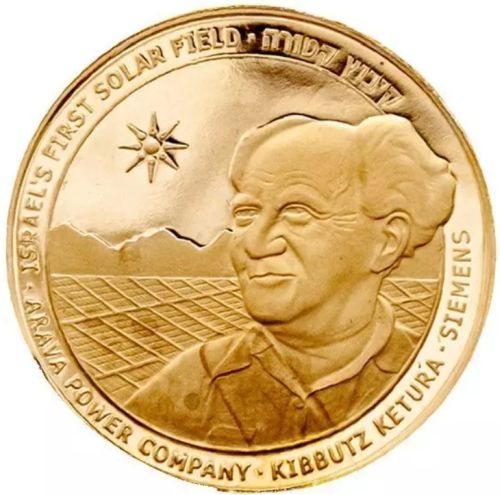 Arava Power Company Israel's First Solar Field - Kibbutz Ketura - Siemens Gold 14k Diameter 30.5 mm |