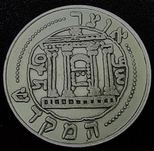 Treasure) Front: Symbol of the Temple Back: Toward renewal of the Commandment of Half Shekel 2001 35 Year of Liberation of the City To the redemption of Holy Jerusalem Metal: Silver 925 Weight: 13.7 gram |