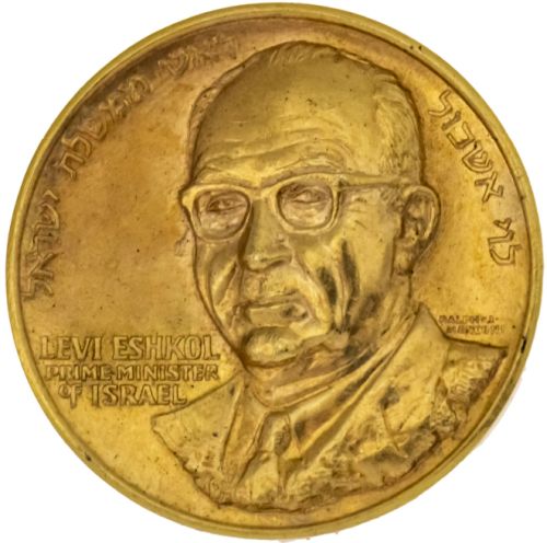 Levi Eshkol - The Six Day War Gold Medal. 22k gold. 29.65gr. Issued by Shekel Front: Levi Eshkol, Prime Minister of Israel Back: a map of Israel and the territories occupied during the war, the text "The Six-Day War 5-10 June 1967" above a Jewish candelabrum |