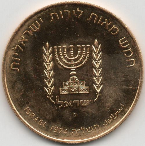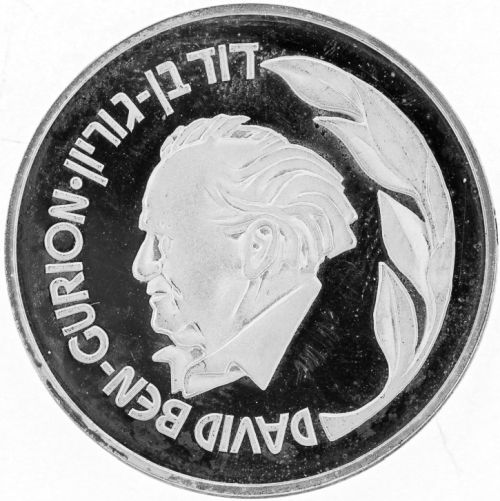 David Ben Gurion 1974 Coin 500 Lirot Gold 900 28 g, diameter mm Issued by the Israel Government Coins and Medals Corp. Minted at the Swiss Federlal Bank, Berne, Mintmark "mem" |