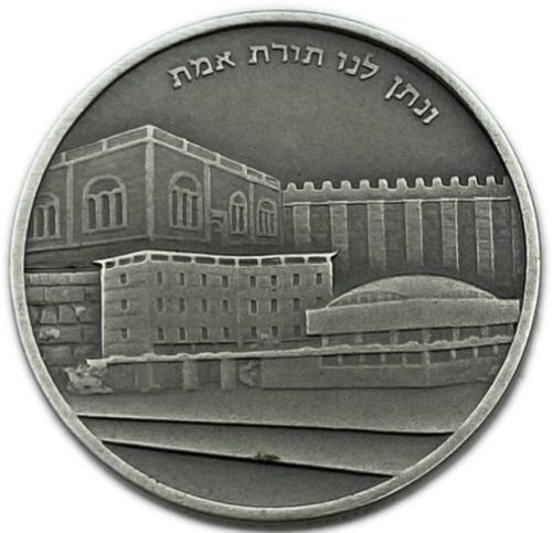 Yeshiva in the City of Hebron 1982 Silver 935 Diameter 35 mm Weight 30 gram Torat Emet in the city of Hebron was founded in 1901 by the Rashb Rebbe. |