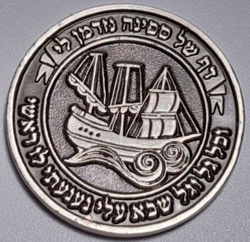 Dayly Page of the Mishna (Daf Yomi) Around the text of "Dayly Page" and the Hebrew Year 2019-2020, the names of the 6 Orders (Chapters) of the Mishna are written. The other side of the medal show a sailing ship with the text: A page of a ship appeared to me and every wave that came to me, I shook my head at him. Bimetal Diameter 28 mm https://daf-yomi.com/ |