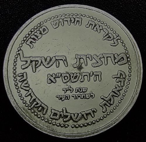 We present here a picture gallery of tokens and medals, distributed in Israel, that relate to religious events, persons, buildings, ideas or traditions. For IGCMC medals of Jewish holidays, look at this page. Commemorative medals of famous rabbis can be found here. Blessing Coins and amulets are found on a special page.