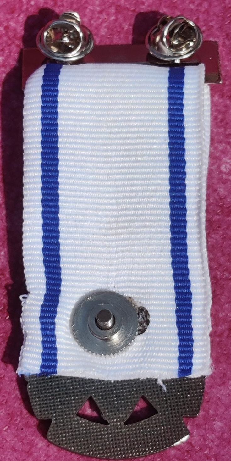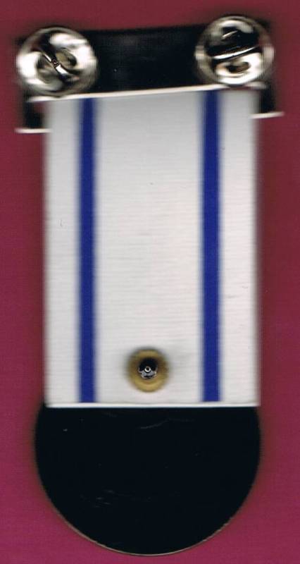 Back of clasp and pin painted black Clasp pin type Medal: reverse smooth Ribbon: plastic |